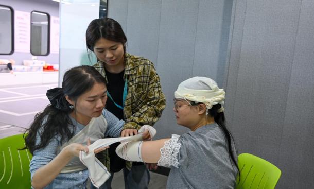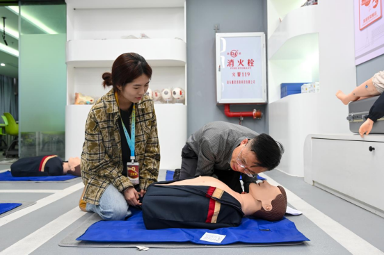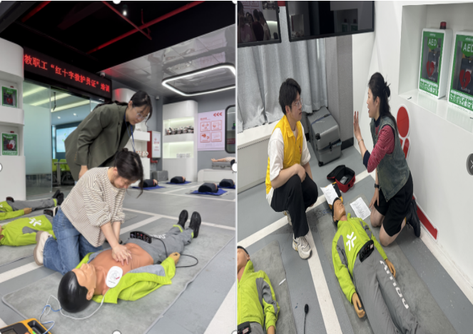本次培訓邀請紅十字救護員培訓專業(yè)師資進行授課,內(nèi)容緊扣日常生活與校園場景,涵蓋心肺復蘇(CPR)、自動體外除顫器(AED)使用、氣道異物梗阻急救(海姆立克法)、創(chuàng)傷包扎止血、骨折固定等核心技能。培訓講師通過案例分析、互動演示等方式,生動講解急救“黃金四分鐘”原則和操作要點,倡導“人人學急救,急救為人人”健康理念。學院紅十字會志愿者們?yōu)閰⒂柦處熂毿募m正動作細節(jié),講解操作要點。在實操環(huán)節(jié),教職工們利用模擬人偶、繃帶、三角巾、自動體外除顫器(AED)等器材分組進行反復演練,學習掌握基礎(chǔ)急救技能。