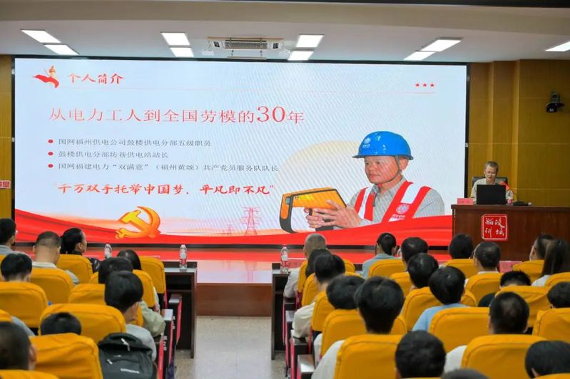 講座中,黃站長以質(zhì)樸語言講述30年電力一線堅守故事:暴雨夜蹚水搶修、臺風(fēng)天獲市民撐傘,從老一輩職工步行交接班的勞動精神啟蒙,到帶領(lǐng)團(tuán)隊(duì)攻克“龍王”臺風(fēng)136萬戶搶修難題。他結(jié)合工作室 “四融四帶四庫”體系,分享“刀片環(huán)削法”等創(chuàng)新成果及榜樣傳承力量,詮釋“0.01毫米級”工匠精神的專注與嚴(yán)謹(jǐn)。最后,他以“崗位是時代錨點(diǎn)”勉勵師生,將工匠精神融入日常,在平凡中錨定不凡坐標(biāo),以匠心點(diǎn)亮奮斗之路,為中國制造添磚加瓦。