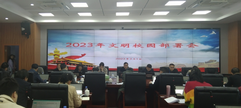 為開展好2023年度文明校園創(chuàng)建工作,進(jìn)一步營(yíng)造創(chuàng)建濃厚氛圍,3月1日上午,學(xué)校召開文明校園部署會(huì),對(duì)創(chuàng)建2023年省級(jí)文明校園的各項(xiàng)測(cè)評(píng)工作做了詳細(xì)部署。黨政辦公室、組織部、宣傳統(tǒng)戰(zhàn)部、學(xué)生工作部、安全保衛(wèi)處、團(tuán)委、后勤管理處負(fù)責(zé)人及二級(jí)學(xué)院黨總支書記參加會(huì)議。會(huì)議由黨委副書記陳宜大同志主持。