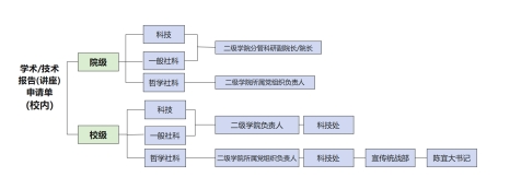 1.各教學(xué)單位應(yīng)按規(guī)定組織教職工、校外學(xué)者、專家開展學(xué)術(shù)/技術(shù)報告(講座),由主講者或者講座組織者在OA辦事大廳上填寫《學(xué)術(shù)/技術(shù)報告(講座)申請單》,按照審批流程進(jìn)行審批,學(xué)術(shù)/技術(shù)報告(講座)時間在不影響正常教學(xué)的情況下,統(tǒng)一安排在每周三下午、周六和周天,講座必須在學(xué)校教室舉行,地點(diǎn)由各二級學(xué)院自行協(xié)調(diào)解決。