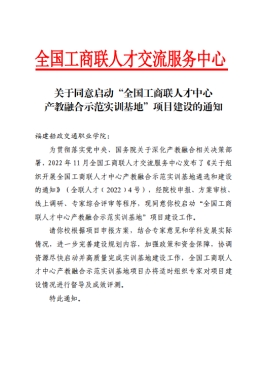 2023年3月16日,學(xué)校收到全國工商聯(lián)人才交流服務(wù)中心《關(guān)于同意啟動“全國工商聯(lián)人才中心產(chǎn)教融合示范實訓(xùn)基地”項目建設(shè)的通知》文件,成功入選首批“全國工商聯(lián)人才中心產(chǎn)教融合示范實訓(xùn)基地”。