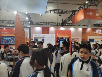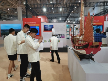 此次主題展,我校聚焦經(jīng)略海洋,以“文化船政”為基礎(chǔ)打造德技并修樣板,通過學(xué)生社團(tuán)心瀾船社制作的“趕繒船結(jié)構(gòu)復(fù)原模型”作品,宣揚(yáng)福船之美,傳承非遺技藝,展現(xiàn)我?!耙幻}、一心、三融入”的專創(chuàng)融合文化育人成果;以“質(zhì)量船政”為支撐推進(jìn)產(chǎn)業(yè)轉(zhuǎn)型升級,通過航海學(xué)院“傳承百年船政薪火 聚焦校企優(yōu)勢資源 打造集團(tuán)化船舶人才培養(yǎng)典范”案例,展現(xiàn)我校打造集團(tuán)化船舶人才培養(yǎng)模式服務(wù)現(xiàn)代海洋產(chǎn)業(yè)發(fā)展的成果;以“創(chuàng)新船政”為動力推動高質(zhì)量發(fā)展,通過對外交流中心“校企攜手深入非洲 賦能非洲職教現(xiàn)代化發(fā)展”案例,展現(xiàn)我校服務(wù)國家“一帶一路”倡議,深化職業(yè)教育國際交流合作,輸出中國職業(yè)教育“船政標(biāo)準(zhǔn)”“船政模式”的成果。