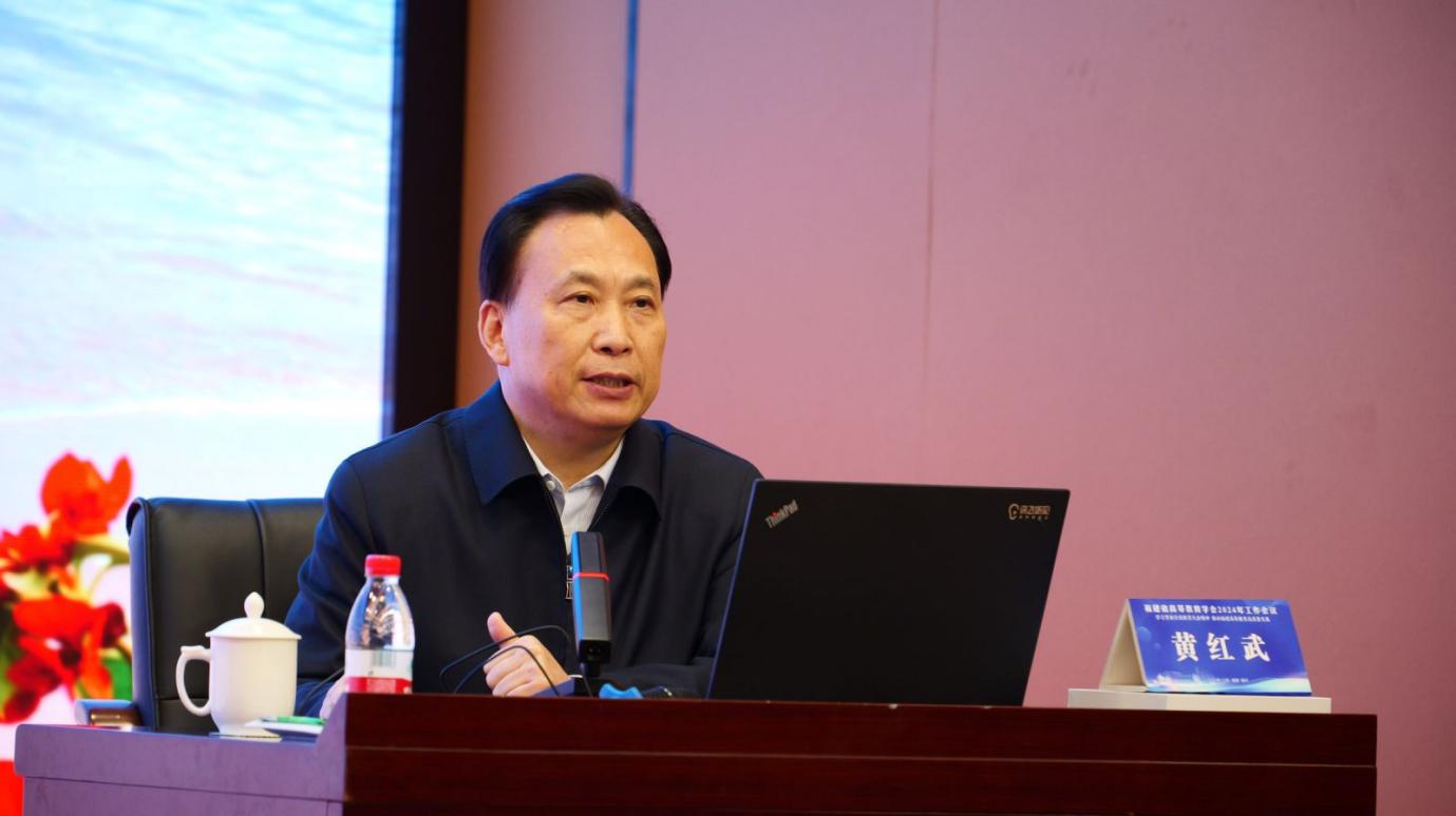 會議邀請了省委教育工委原書記,省教育廳原黨組書記、廳長黃紅武教授作題為《交叉融合 模式創(chuàng)新——為什么當下群體性出現新型研究型大學》的專題報告。黃紅武教授基于長期的高等教育管理實踐,立足中國特色社會主義教育強國建設,深刻闡釋了新型研究型大學的基本內涵,深度剖析了當下群體性出現新型研究型大學的內外因素,深入闡述了新型研究型大學的建設方向和前行道路,向參會人員作了一場極具政治性、思想性、指導性、時代性、針對性的高質量報告。