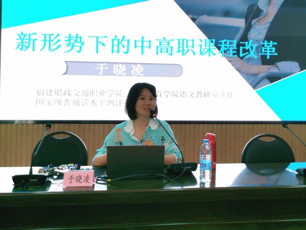 于曉凌老師以目前社會熱議的“教學改革”為中心,開設了主題為“新形勢下的中高職課程改革”的講座,主要從中高職課程改革必然性、國內外課程改革現(xiàn)狀、以點帶面——以高職語文為例解析新形勢下的中高職公共基礎課程改革趨勢這三個大方向,向在場教師介紹了中高職課程改革的必然性和重要性。講座氣氛活躍,引起在場教師們共鳴。