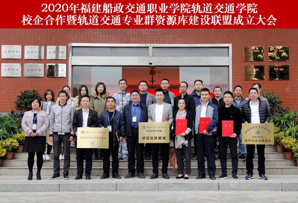 為深入落實學校“雙高計劃”建設,推進產(chǎn)教融合,以專業(yè)群來統(tǒng)籌校企合作、提升專業(yè)與產(chǎn)業(yè)之間資源融合度,2020年11月30日, 軌道交通學院順利召開校企合作暨軌道交通專業(yè)群資源庫建設聯(lián)盟成立大會,大會在福建船政交通職業(yè)學院北區(qū)三樓會議廳隆重舉行。福建船政交通職業(yè)學院高汝武副校長,軌道交通學院黨政領導班子、全院教職工及企業(yè)代表共同出席成立大會。