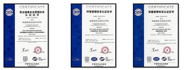 2020年11月24日,我校申請的ISO9001質(zhì)量管理體系、ISO14001環(huán)境管理體系和ISO45001職業(yè)健康安全管理體系順利通過認(rèn)證并取得證書。