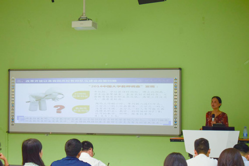 楊小霞副教授就新時代加強(qiáng)高校教師隊(duì)伍建設(shè)的若干思考展開講學(xué),從“深刻理解習(xí)近平總書記關(guān)于教師隊(duì)伍建設(shè)的重要論述”到“改革開放以來我國高校教師隊(duì)伍建設(shè)政策回顧”到“充分認(rèn)識加強(qiáng)高校教師隊(duì)伍建設(shè)的戰(zhàn)略背景”再到“進(jìn)一步明確新時代高校教師隊(duì)伍建設(shè)的突出重點(diǎn)”最后到“新時代高校教師隊(duì)伍建設(shè)的路徑選擇”,給老師們詳細(xì)講解了新時代加強(qiáng)高校教師隊(duì)伍建設(shè)應(yīng)當(dāng)如何進(jìn)行。楊小霞副教授還強(qiáng)調(diào):師者,要有仁愛之心,愛學(xué)生的情懷應(yīng)當(dāng)具備。