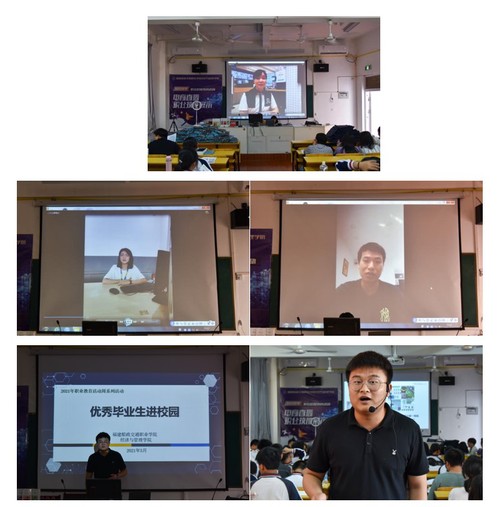 同時(shí),我們還通過現(xiàn)場視頻連線的方式講述了經(jīng)濟(jì)與管理學(xué)院幾位優(yōu)秀校友的成長歷程。并特別邀請(qǐng)到2012級(jí)電子商務(wù)專業(yè)的何俊鋒同學(xué)作為船政優(yōu)秀校友代表與在場的同學(xué)們分享了自己求學(xué)及成功創(chuàng)業(yè)的經(jīng)歷,告訴同學(xué)們職業(yè)教育也能成功成才,成就出彩人生,勉勵(lì)同學(xué)們要敢想敢闖敢拼。