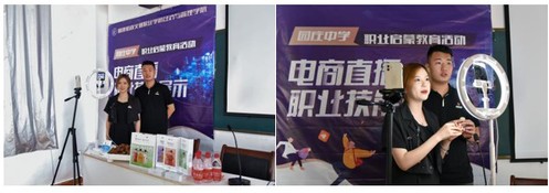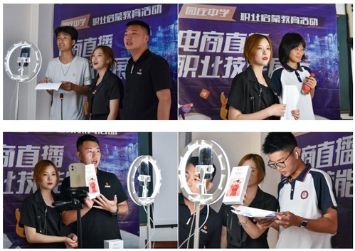電商直播作為網(wǎng)絡(luò)直播的商業(yè)化應(yīng)用,逐漸成為擴(kuò)大內(nèi)需、助推內(nèi)循環(huán)的新引擎。在本次活動(dòng)中,2019級(jí)市場營銷1班許明澤與鄧陳丹兩位學(xué)生通過現(xiàn)場搭建電商直播間進(jìn)行了電商直播職業(yè)技能的展示。在同學(xué)們的眼中直播的設(shè)備與場景是那么得新奇、有趣,在他們的心中埋下的職業(yè)與夢(mèng)想的種子。通過觀看哥哥姐姐們的直播展示,臺(tái)下的同學(xué)們興奮不已,躍躍欲試,爭先恐后地上臺(tái)參與到直播體驗(yàn)中。在兩位主播的耐心引導(dǎo)下,參與的同學(xué)們自信地模仿著,直觀地了解職業(yè)教育、認(rèn)識(shí)職業(yè)教育、體驗(yàn)職業(yè)教育的精彩,切身感受到職業(yè)教育的魅力。