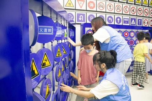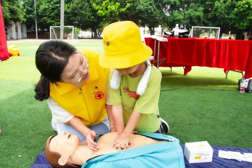 隨后,華南實(shí)驗(yàn)幼兒園的孩子們跟隨著老師和志愿者們來到南區(qū)操場(chǎng)的活動(dòng)現(xiàn)場(chǎng),進(jìn)行趣味十足的各項(xiàng)安全模塊的體驗(yàn)活動(dòng)。