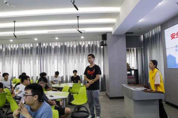 志愿者們用理論引領實踐,通過帶領同學們現(xiàn)場體驗安全救護實訓區(qū)、居家安全實訓區(qū)、交通安全實訓區(qū)、環(huán)境安全實訓區(qū)、消防安全實訓區(qū)、公共安全實訓區(qū)等趣味性、體驗性較強的活動,引導同學們充分體驗了安全與環(huán)境學院公共安全產教融合實訓基地的強大功能,向同學們展示了一堂科學化、體系化的安全教育課。