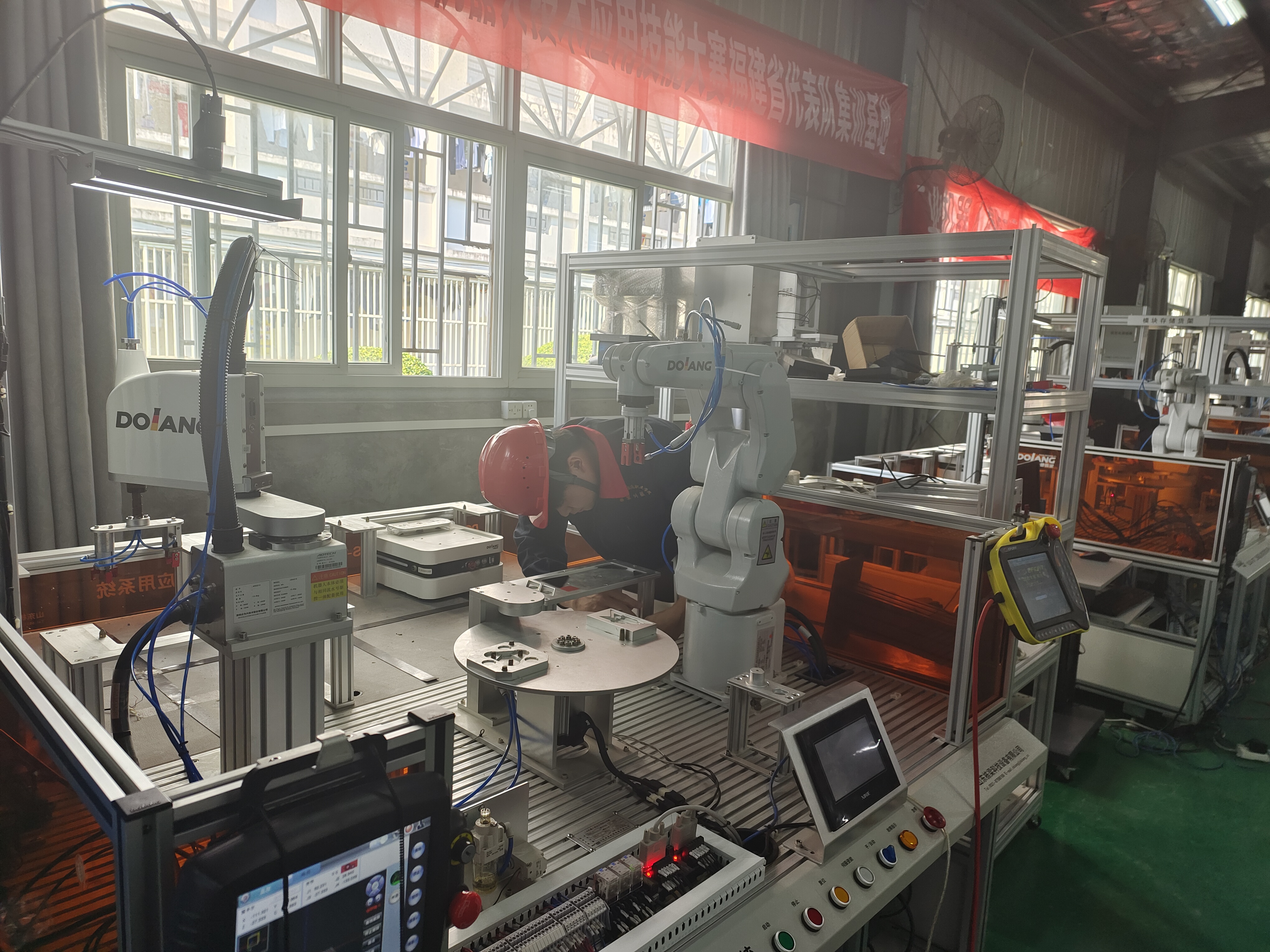 圖2 工業(yè)機(jī)器人操作與運(yùn)維1+X實操考試現(xiàn)場