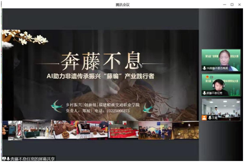 本屆大賽自啟動(dòng)以來,共吸引了全國(guó)5178個(gè)鄉(xiāng)村振興創(chuàng)業(yè)項(xiàng)目報(bào)名參賽。大賽分為初賽、半決賽、決賽等環(huán)節(jié),通過線上項(xiàng)目資料評(píng)審、現(xiàn)場(chǎng)路演答辯等方式進(jìn)行。我院“《奔藤不息》AI助力非遺‘藤編’產(chǎn)業(yè)振興引領(lǐng)者”項(xiàng)目在張?zhí)煨?、段吳勇、許友孝和雷筱珍老師精心指導(dǎo)下成功入圍現(xiàn)場(chǎng)半決賽,喜獲銀獎(jiǎng)。