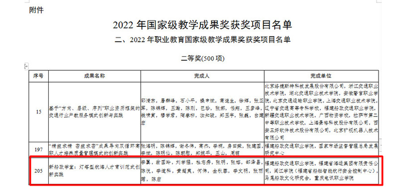 7月24日,教育部公布了2022年國家級教學(xué)成果獎獲獎項目名單。由我校航海學(xué)院主持申報的《新船政學(xué)堂:燈塔型航海人才育訓(xùn)范式創(chuàng)新實(shí)踐》教學(xué)成果獲得二等獎。