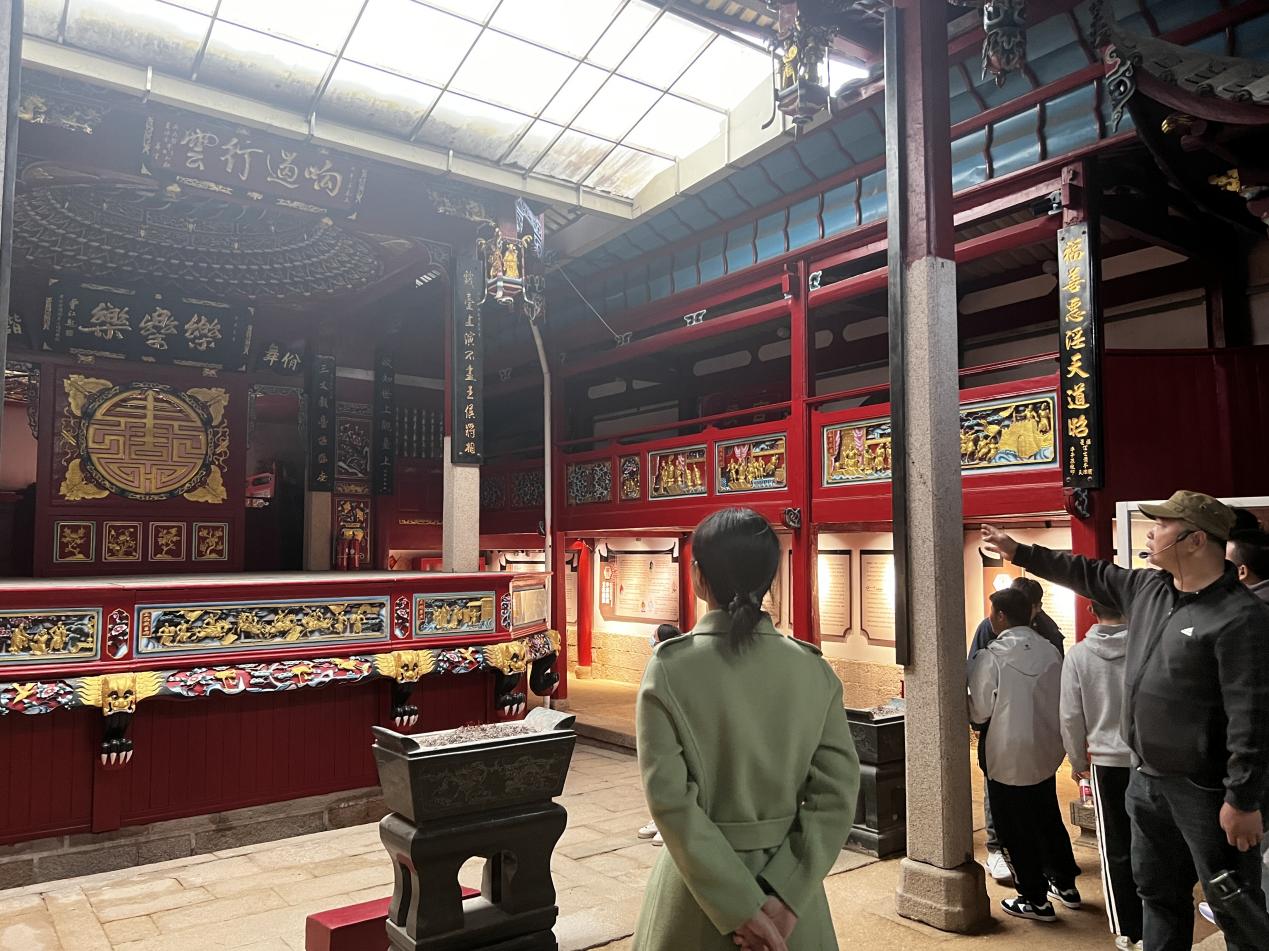 隨后,同學(xué)們來到了侯官村,跟隨侯官村村委會紀(jì)委委員王國峰的介紹,進(jìn)行實(shí)地考察與深入走訪。侯官自漢代建縣以來,以閩越文化為基礎(chǔ),在長期的歷史發(fā)展中不斷融合其他多元文化,保留儒家文化傳統(tǒng)及古代中原文化的精神內(nèi)涵,展現(xiàn)出文藝繁榮、交流活躍,文明進(jìn)步的生動局面?!伴_眼看世界的第一人”林則徐、“中國船政之父”沈葆楨、中國近代“西學(xué)第一人”嚴(yán)復(fù)、“黃花崗七十二烈士”林覺民和方聲洞……一群引領(lǐng)時代的杰出人物都來自侯官。同學(xué)們在參觀中學(xué)習(xí)歷史知識,在考察中感悟文化偉力,深刻感受到“侯官”早已不僅是一個地名詞,更是一種精神層面的標(biāo)志性符號。