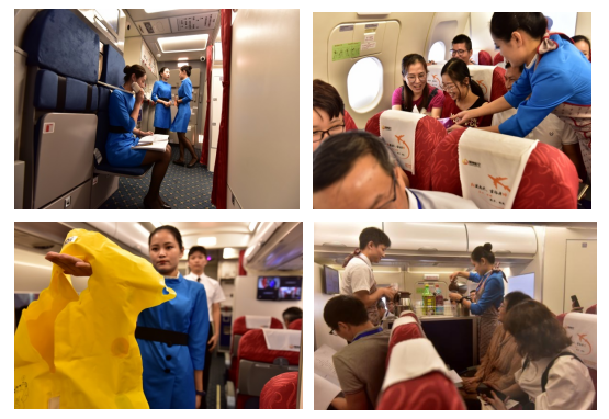 在旅途中,老師與同學(xué)共同模擬演示了客艙服務(wù)的全過(guò)程以及各種突發(fā)情況,包括迎接乘客登機(jī)、安全演示、客艙餐飲與娛樂(lè)服務(wù)、歡送乘客下飛機(jī)等。18空中乘務(wù)的同學(xué)們能明確并熟悉客艙服務(wù)的工作程序及相關(guān)內(nèi)容要求,很好地展現(xiàn)空中乘務(wù)員的職業(yè)形象和專業(yè)素養(yǎng),并能熟悉客艙安全規(guī)則、安全管理,能完整而又準(zhǔn)確地提供客艙正餐服務(wù)。