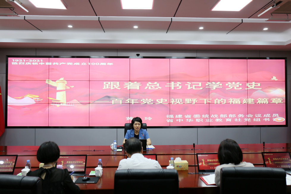 為推動(dòng)黨史學(xué)習(xí)教育走深走實(shí),教育引導(dǎo)全校師生牢固樹立學(xué)“四史”、葆初心、擔(dān)使命的思想自覺、行動(dòng)自覺,做到學(xué)史明理、學(xué)史增信、學(xué)史崇德、學(xué)史力行,學(xué)院邀請到福建省委統(tǒng)戰(zhàn)部部務(wù)會(huì)議成員、省中華職教社的黃玲書記于6月2日下午蒞校作《跟著總書記學(xué)黨史——百年黨史視野下的福建篇章》講座。學(xué)院黨委副書記陳宜大主持講座,中層干部、學(xué)生代表參加。