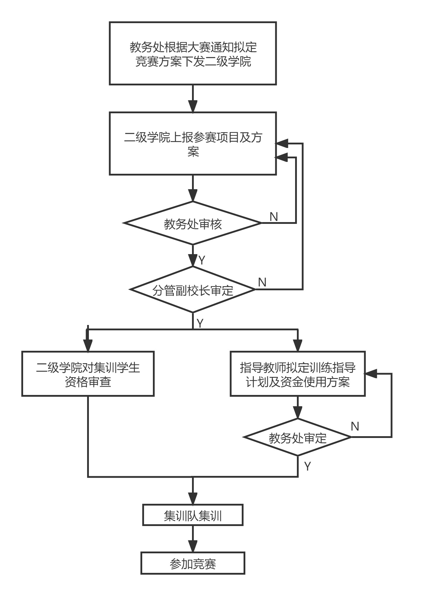 ②二級(jí)學(xué)院確定參賽后,填寫參賽申請(qǐng)報(bào)教務(wù)處審核定級(jí)、學(xué)校分管領(lǐng)導(dǎo)審批。經(jīng)審批后,安排優(yōu)秀老師作為相關(guān)項(xiàng)目負(fù)責(zé)人及指導(dǎo)教師,組成競(jìng)賽指導(dǎo)團(tuán)隊(duì),具體負(fù)責(zé)相關(guān)賽項(xiàng)組織、訓(xùn)練事宜。