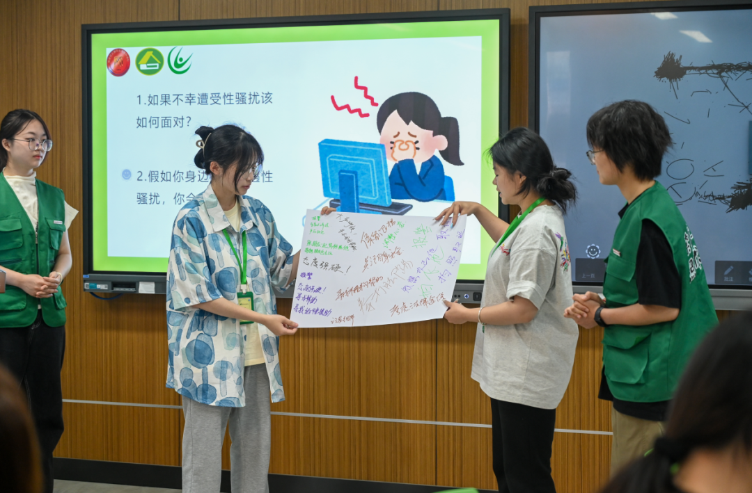 最后,由福建幼兒師范高等專(zhuān)科學(xué)校的青春健康主持人開(kāi)展以“預(yù)防性騷擾知識(shí)科普”為主題的活動(dòng)分享,通過(guò)角色扮演的方式營(yíng)造相對(duì)輕松安全的氛圍,緩解參與者面對(duì)性騷擾話題的羞恥、尷尬心理,也清晰界定了性騷擾的形式,隨后通過(guò)小組討論的形式告訴參與者遇到性騷擾應(yīng)保持冷靜,明確表達(dá)拒絕,留存證據(jù),尋求他人幫助。