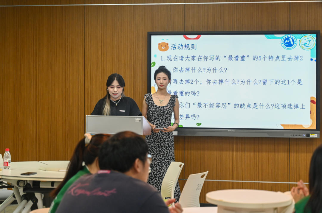 隨后,福建衛(wèi)生職業(yè)技術(shù)學(xué)院的青春健康主持人進(jìn)行“人際交往與健康戀愛(ài)”活動(dòng)的分享,通過(guò)逐步篩選的方式選出自己“最看重”特點(diǎn),幫助參與者深度剖析自己內(nèi)心對(duì)伴侶的核心需求,明晰在戀愛(ài)伴侶選擇中真正關(guān)鍵、不可舍棄的特質(zhì),避免在戀愛(ài)中因標(biāo)準(zhǔn)模糊而盲目。