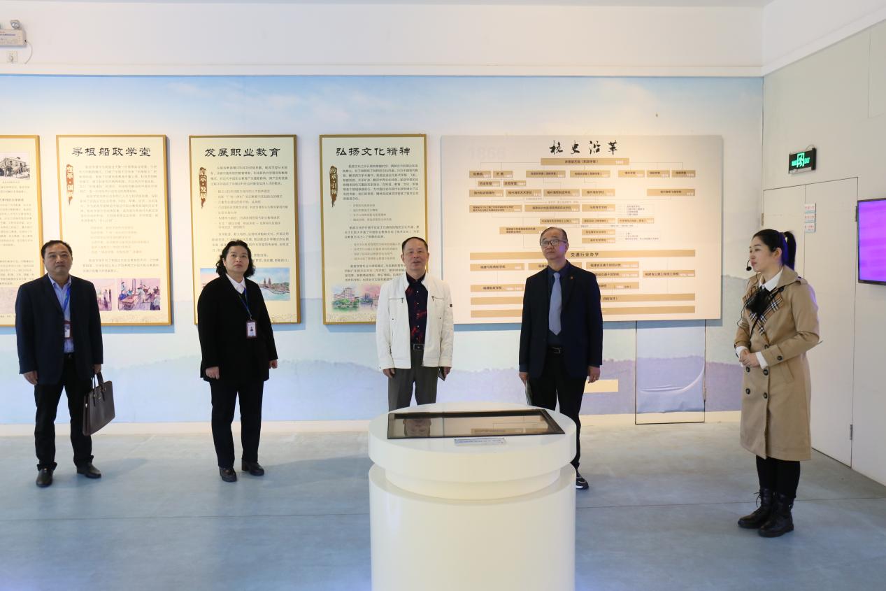 楊忠勇博士一行在張輝書記陪同下參觀校史館、沈巖藝術(shù)館、藝新樓。