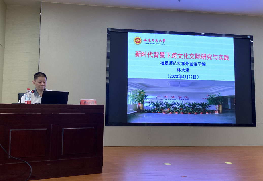 福建師范大學(xué)外國(guó)語學(xué)院前院長(zhǎng)、博士生導(dǎo)師、國(guó)務(wù)院政府特殊津貼專家、福建省優(yōu)秀教師林大津教授作題為“新時(shí)代背景下跨文化交際研究與實(shí)踐”的專題講座。林大津教授圍繞中西方文化特點(diǎn)及差異,分享他的跨文化研究歷程,詮釋了中外人文交流的真諦,并提出“一帶一路”建設(shè)需要語言鋪路、投石問路,要求每一位建設(shè)者拓寬國(guó)際視野,識(shí)別、理解、尊重多元文化,提升用英語傳播中華文化的能力。林大津教授激情澎湃、旁征博引的學(xué)者風(fēng)范贏得老師們的陣陣掌聲。