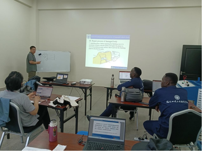 2024年6至11月,學(xué)院職教出海選派的優(yōu)秀師資團(tuán)隊(duì)黃林火、張宇峰兩位教師再次啟程,跨越萬里,從福建到非洲大陸,他們揚(yáng)帆出海,乘勢(shì)而上,持續(xù)向世界輸送“船政模式”職業(yè)教育品牌,圓滿完成了為期半年的烏干達(dá)汽車專業(yè)骨干師資培訓(xùn)。團(tuán)隊(duì)因“國”制宜,制定適應(yīng)當(dāng)?shù)卦盒P枰钠噷I(yè)建設(shè)標(biāo)準(zhǔn)、實(shí)驗(yàn)實(shí)訓(xùn)條件建設(shè)標(biāo)準(zhǔn),精心設(shè)計(jì)汽車發(fā)動(dòng)機(jī)構(gòu)造與維修、汽車底盤構(gòu)造與維修、汽車電氣設(shè)備構(gòu)造與維修等9門課程標(biāo)準(zhǔn),并高質(zhì)量完成680課時(shí)的汽車技術(shù)培訓(xùn),輸出了一套國際化汽車維修專業(yè)職業(yè)教育標(biāo)準(zhǔn)。
