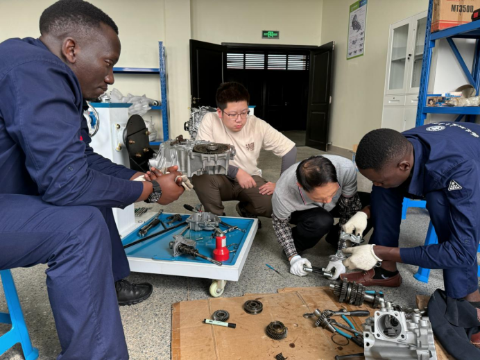 “職教出?!笔锹殬I(yè)教育服務(wù)大國外交與國際產(chǎn)能合作的有效路徑,融匯了東方古老智慧與工匠精神,搭建的是民心相通、文明互鑒的橋梁。汽車學(xué)院在“職教出海”發(fā)展路線上始終堅(jiān)持高質(zhì)量、品牌化、可持續(xù),在發(fā)展目標(biāo)上逐步從“建成”向“辦好”轉(zhuǎn)移。堅(jiān)定不移的促進(jìn)中國教育標(biāo)準(zhǔn)、方案、模式和制度的“走出去”與“融進(jìn)去”,與“一帶一路”共建國家共享中國的職教經(jīng)驗(yàn),通過促進(jìn)技術(shù)進(jìn)步與人力資源發(fā)展,支持各國增強(qiáng)自主發(fā)展能力,為構(gòu)建人類命運(yùn)共同體作出積極貢獻(xiàn)。2018年以來,汽車學(xué)院積極踐行“一帶一路”倡議,先后指導(dǎo)肯尼亞、加蓬、科特迪瓦等非洲國家創(chuàng)辦汽車專業(yè)并開展師資培訓(xùn),專門制定適應(yīng)當(dāng)?shù)卦盒P枰钠噷I(yè)建設(shè)標(biāo)準(zhǔn)、實(shí)驗(yàn)實(shí)訓(xùn)條件建設(shè)標(biāo)準(zhǔn)、課程標(biāo)準(zhǔn),中英文教材及教學(xué)資源、中法文教材及教學(xué)資源。