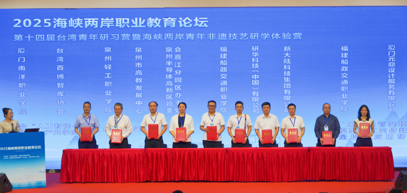 7月15日-17日,2025海峽兩岸職業(yè)教育論壇在福建省福州市成功舉行。此次論壇以“AI賦能職業(yè)教育”為主題,由中華職業(yè)教育社、福建省中華職業(yè)教育社聯(lián)合臺灣多家社會團體共同主辦,福建船政交通職業(yè)學院承辦,《教育與職業(yè)》雜志社協(xié)辦。論壇涵蓋開幕式、揭牌儀式、項目簽約、學術(shù)報告、嘉賓對話、文化活動、現(xiàn)場教學等多項議程,來自兩岸的職業(yè)教育專家、學者、院校和企業(yè)代表等230余人出席活動。