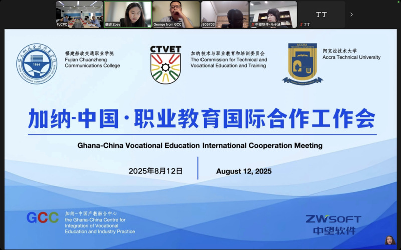 近日,我院與加納阿克拉技術(shù)大學(xué)召開“職教出?!笔状魏献鞴ぷ鲿?huì)議。會(huì)議由加納教育部技能課程開發(fā)與評(píng)估中心主任Peter Boahin主持,加納-中國(guó)產(chǎn)教融合中心主任鄭凱歌、阿克拉技術(shù)大學(xué)常務(wù)校長(zhǎng)Engr.Prof. Amevi Acakpovi、學(xué)院副院長(zhǎng)陳常暉、中望軟件業(yè)務(wù)總監(jiān)于敖出席會(huì)議,阿克拉技術(shù)大學(xué)工程學(xué)院院長(zhǎng)、我院土木工程學(xué)院院長(zhǎng)、中望軟件相關(guān)工作人員及雙方學(xué)校教師代表參加了此次會(huì)議。